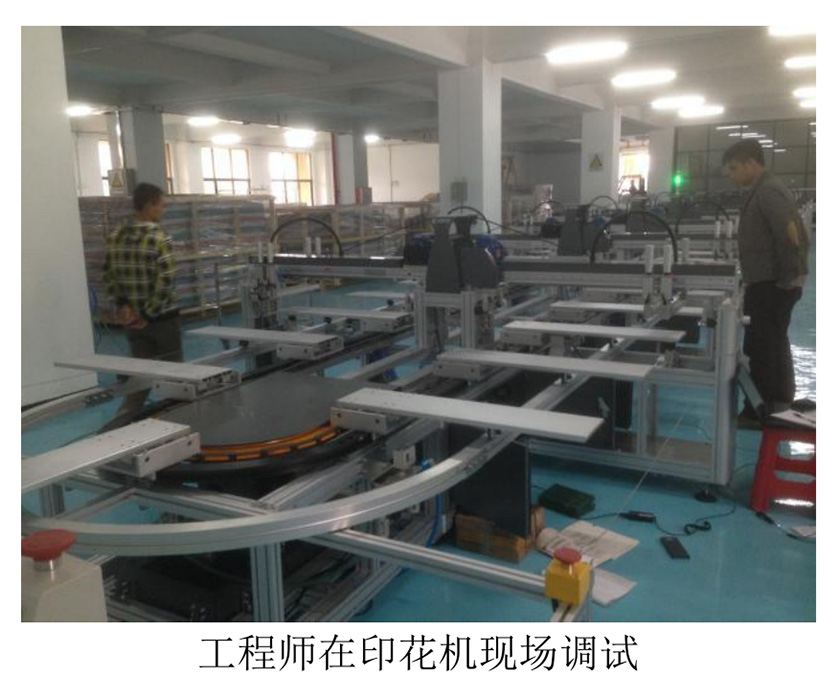 印花機(jī)可分為 8 色,12 色,24 色等等,顏色越多工位就越多,需要的電機(jī)和變頻器就越多,但應(yīng)用起來也主要是分兩種應(yīng)用,一個(gè)是主臺(tái)板的,一個(gè)是每個(gè)工位上的刷頭的,下面就逐一介紹一下。