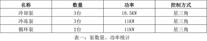 該系統設計之初,均沒有考慮冷卻泵、冷凍泵、循環泵采用變頻控制(如下表1),而是采用傳統的星三角啟動方式(舊電柜見下圖1),根據對系統運行工藝的觀察,泵總功率110.5KW,電能浪費嚴重,存在較大的節能空間。