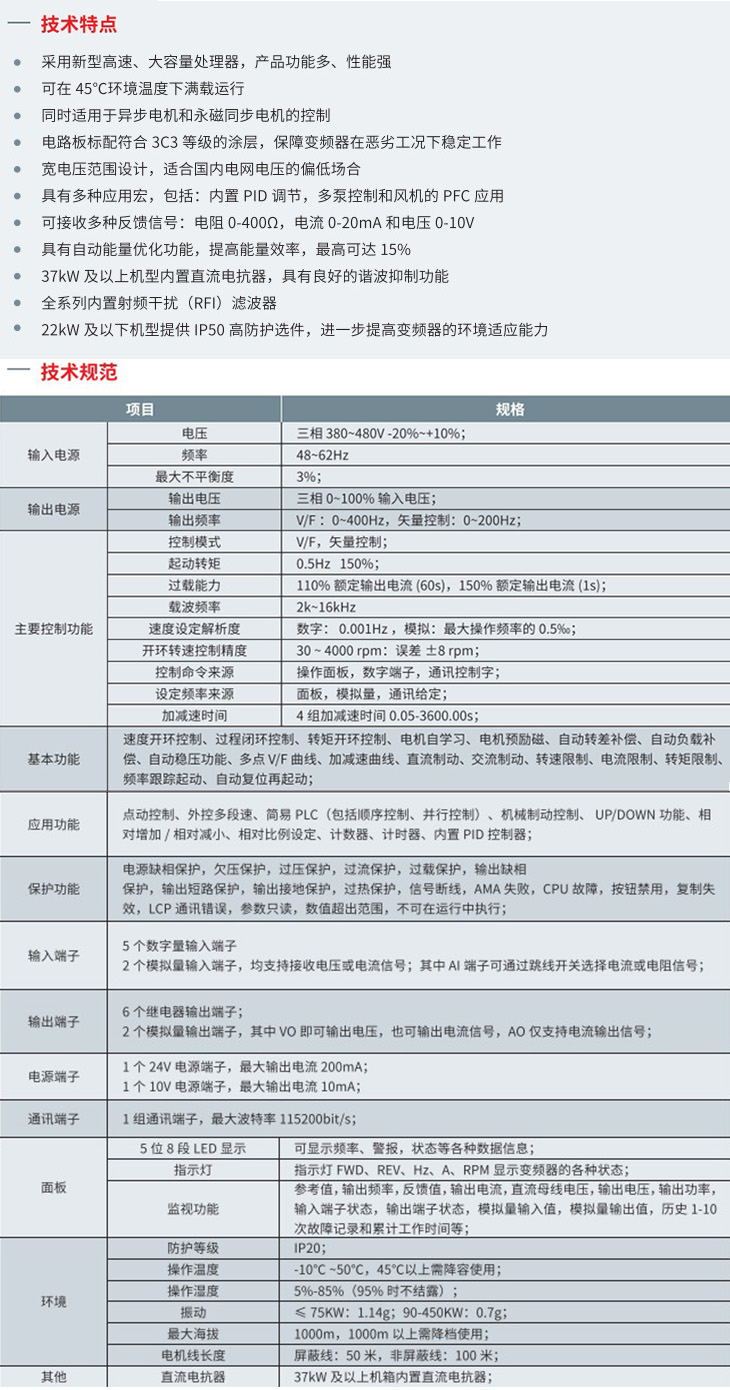 具有多種應用宏,包括:內置PID調節,多泵控制控制和風機的PFC應用