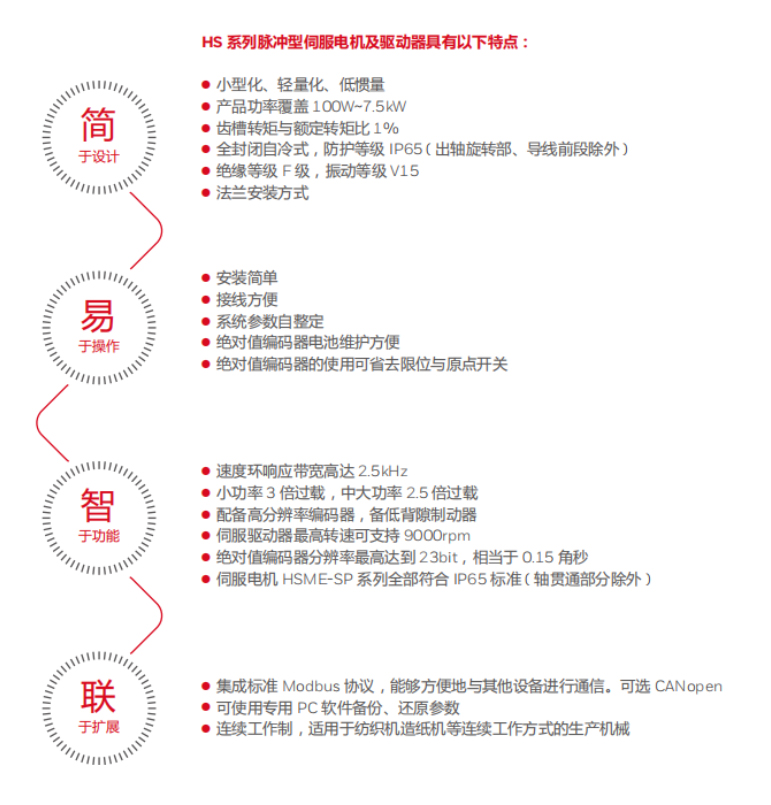 伺服電機HSME-SP系列全部符合IP65標(biāo)準(zhǔn)(軸貫通部分除外)