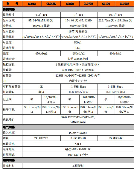 GL系列是Green系列旗下的經(jīng)濟(jì)型系列,目前推出3個尺寸:4.3"、7"、10.1",型號分別是 GL043、GL043E、GL070、GL070E、GL100E,GL系列是Green系列旗下的經(jīng)濟(jì)型系列,準(zhǔn)確地提供了人機(jī)界面的標(biāo)準(zhǔn)功能,經(jīng)濟(jì)實用,具備高性價比,是您設(shè)備配置的首選型號。