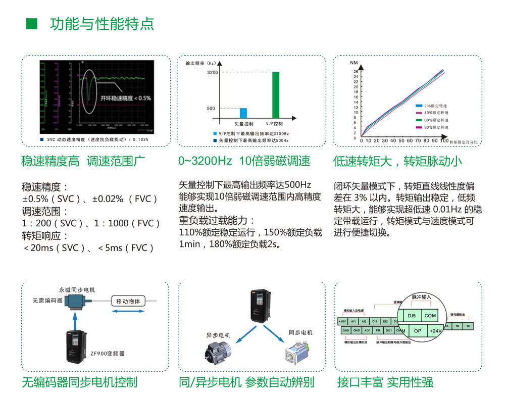 技術特點: 自動轉矩提升及滑差補償功/加減速性能優越/支持多種PG卡/穩速